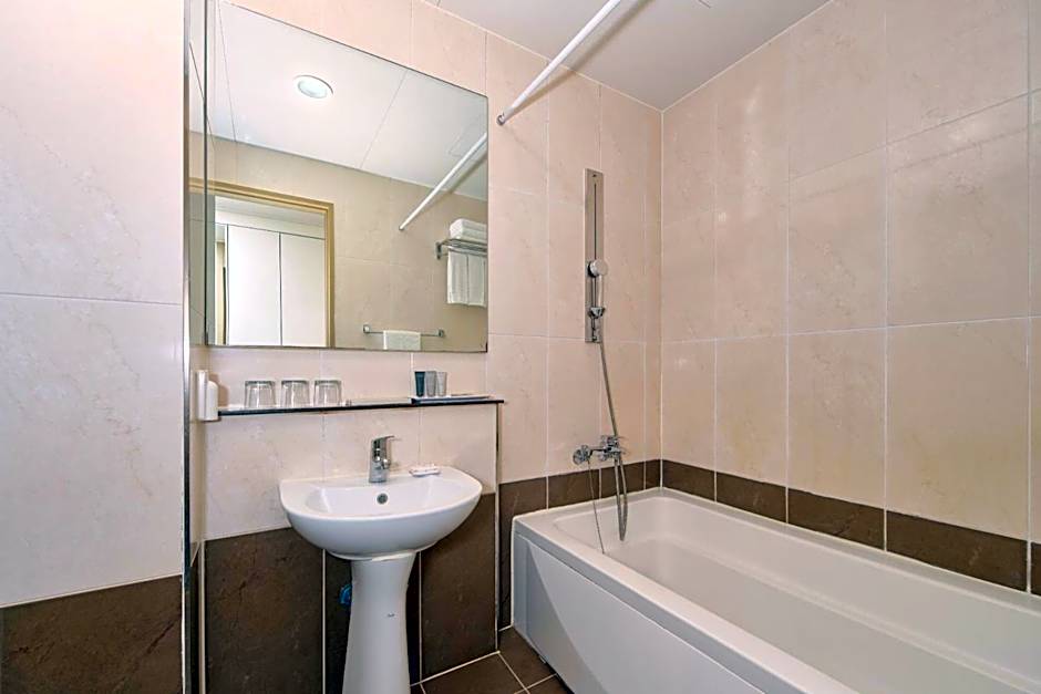 The air-conditioned suite features 1 bedroom and 1 bathroom with a shower and a hairdryer. The suite provides soundproof walls, a wardrobe, an electric kettle, a flat-screen TV with satellite channels, as well as city views. The unit offers 3 beds.